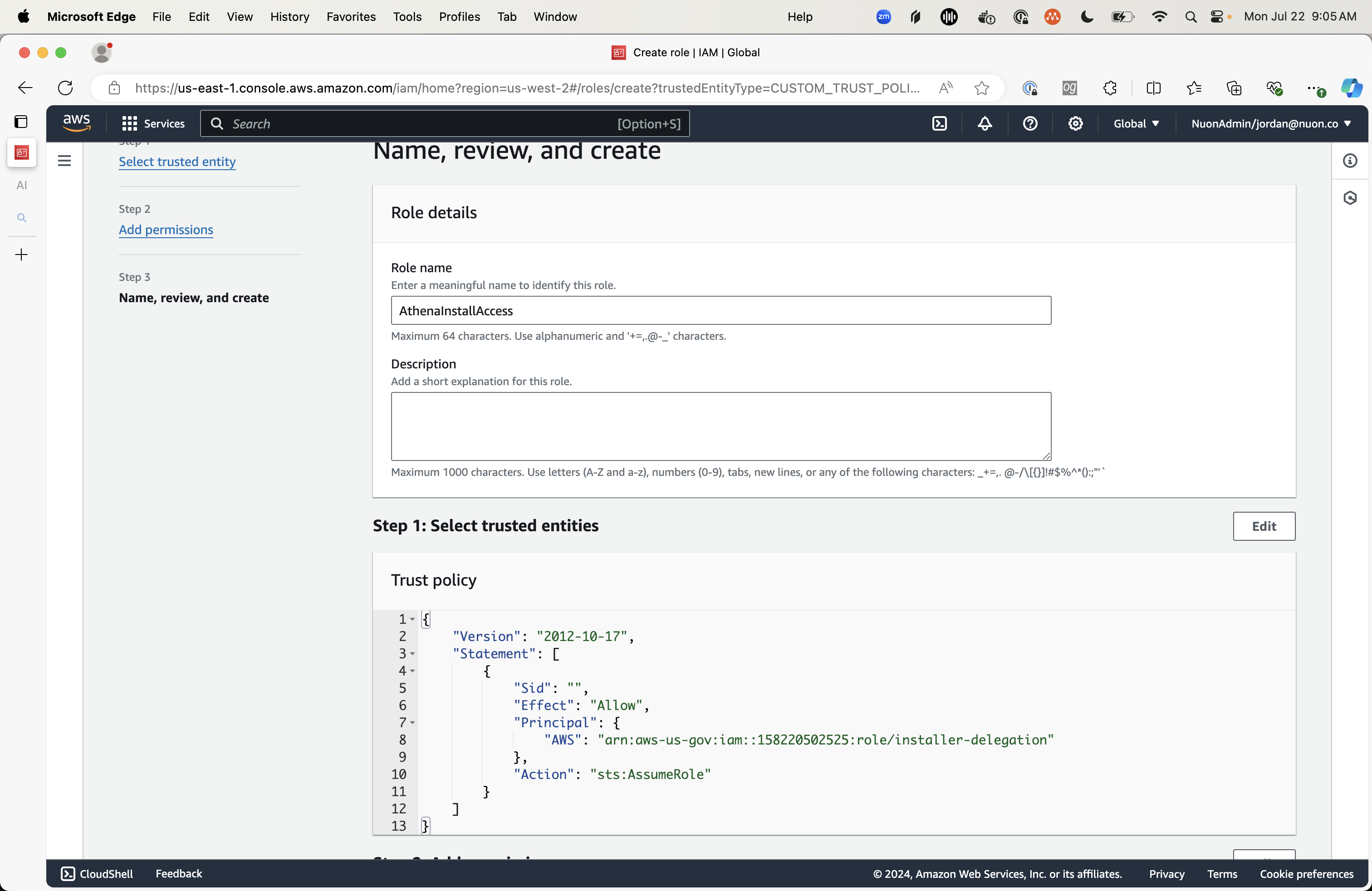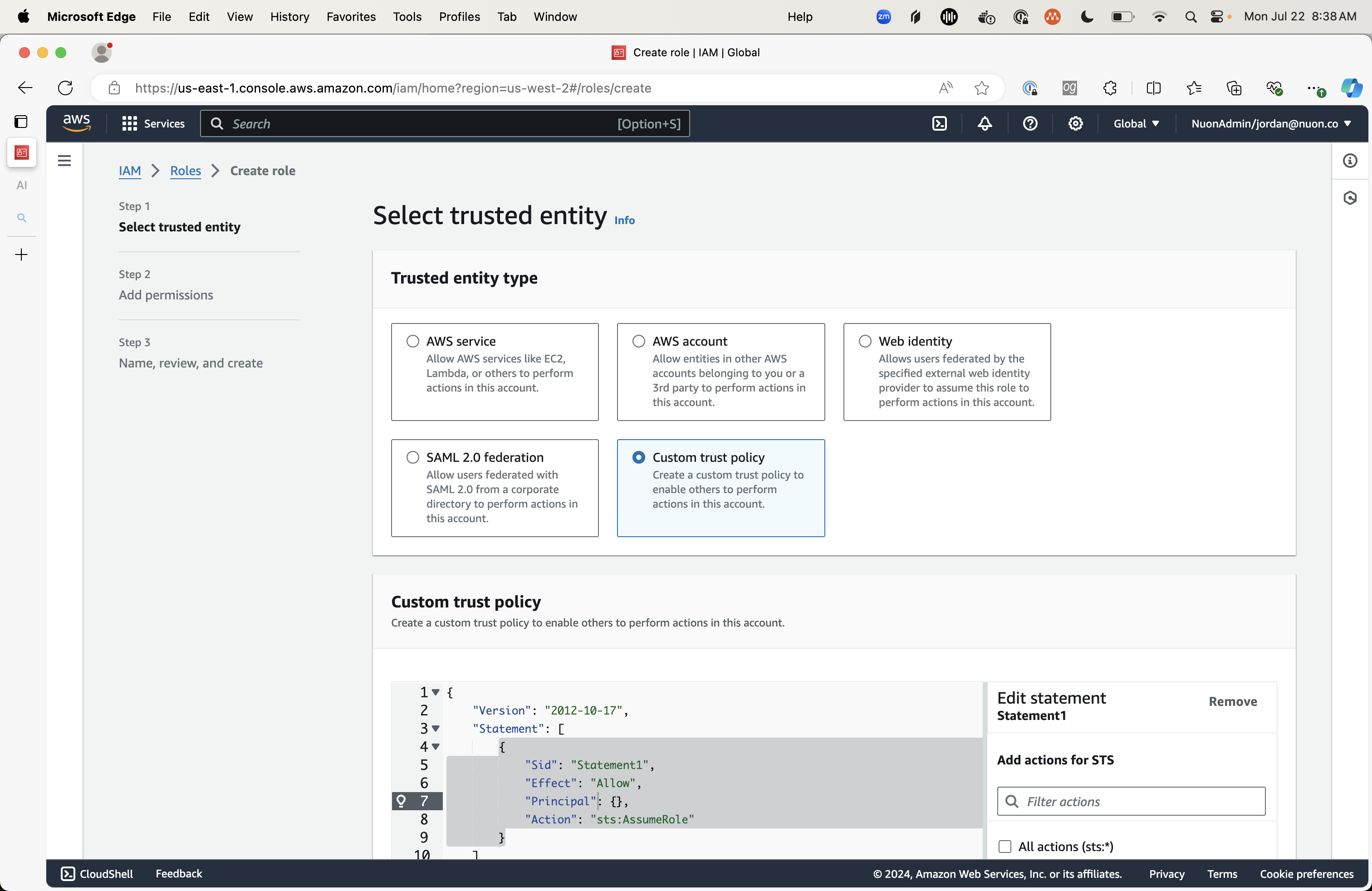 - This will reveal a JSON editor field with the heading “Custom trust policy”.