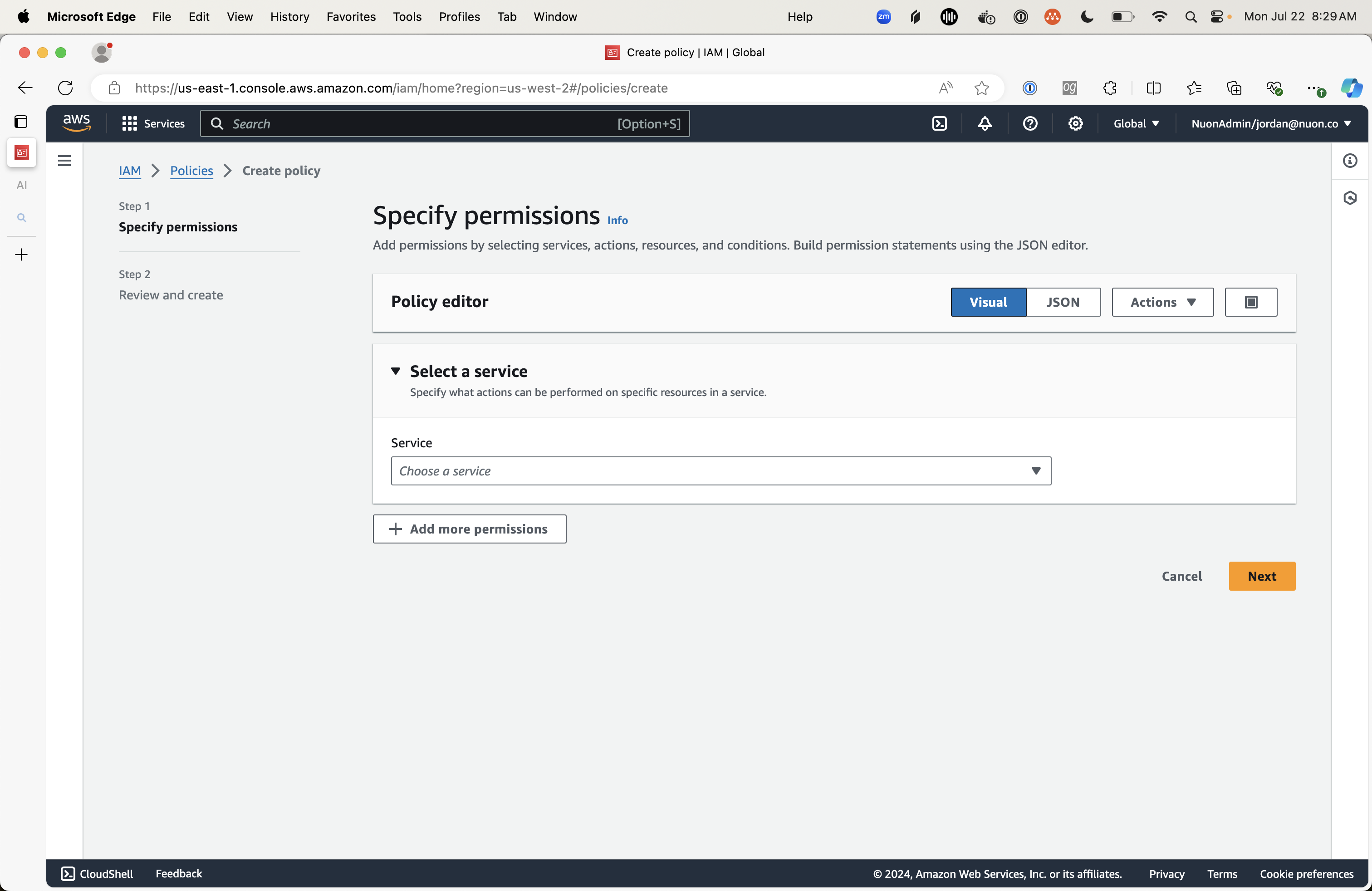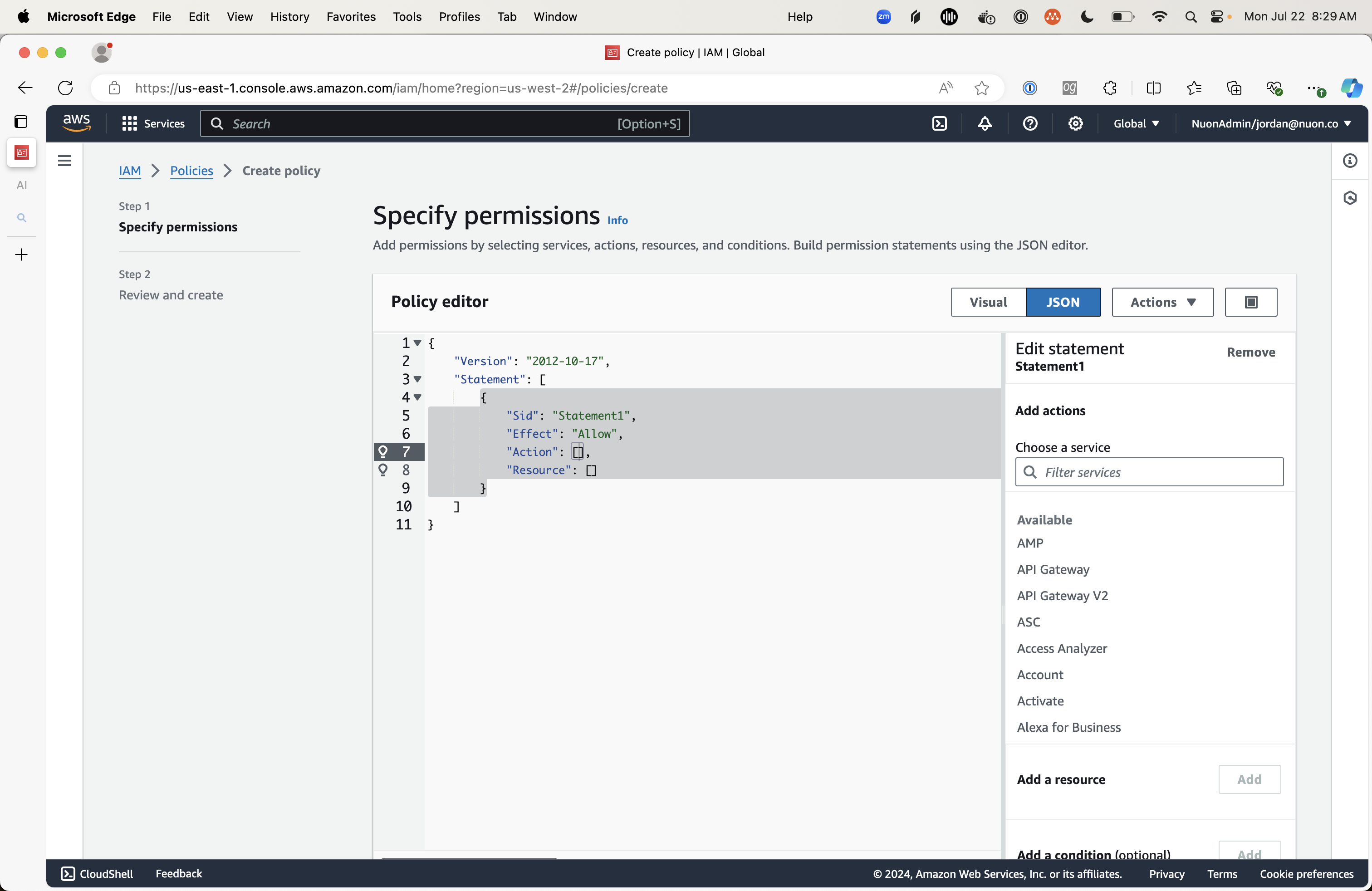 - Look for the “Policy editor”, where “visual” will be selected. Select “JSON”.