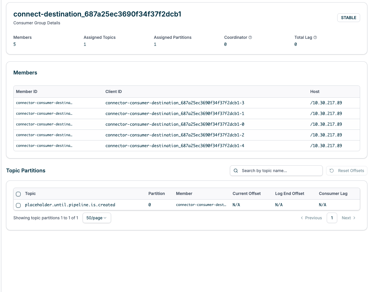- Reset Offsets: Select partitions using checkboxes and click “Reset Offsets” to change offset positions