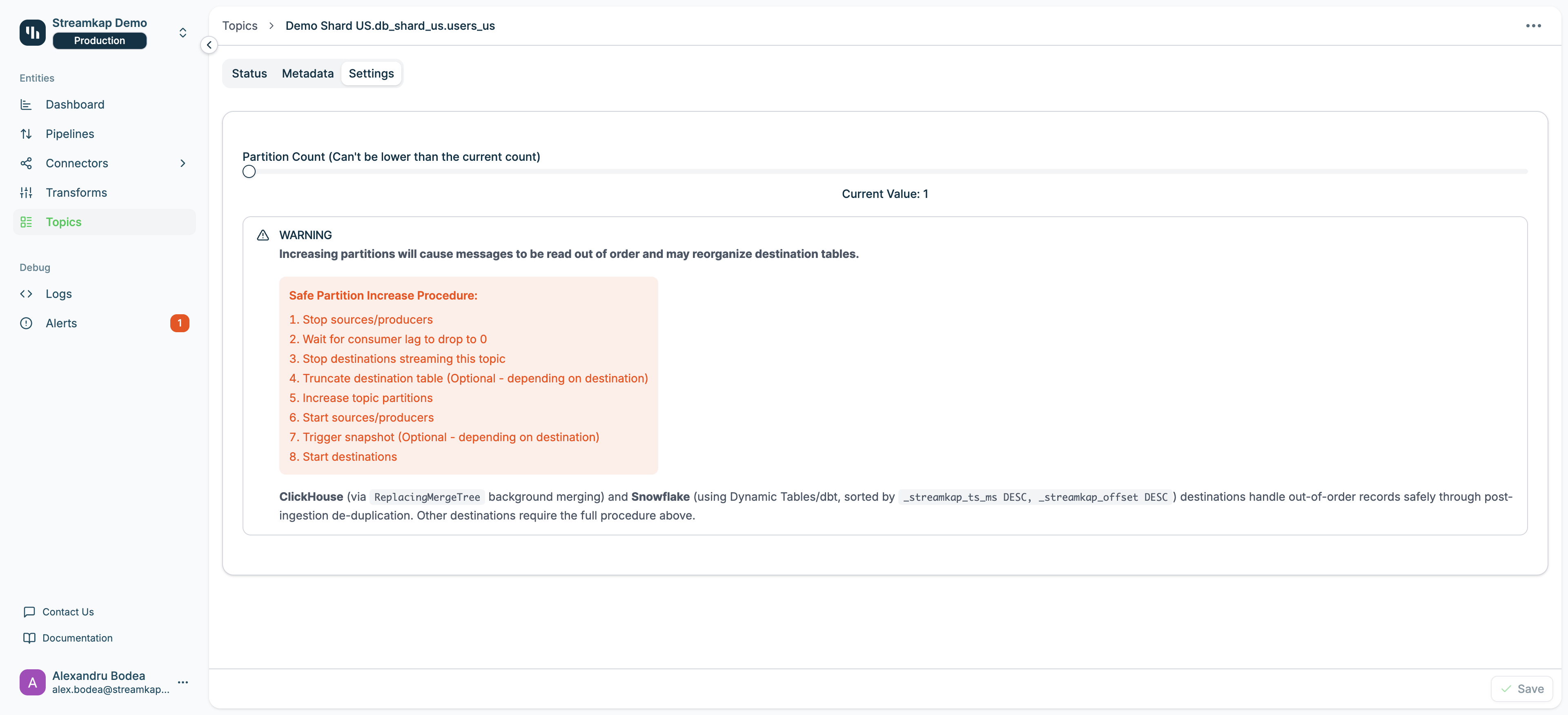 - Document Partition Changes: Record partition increase operations and their impact on downstream systems