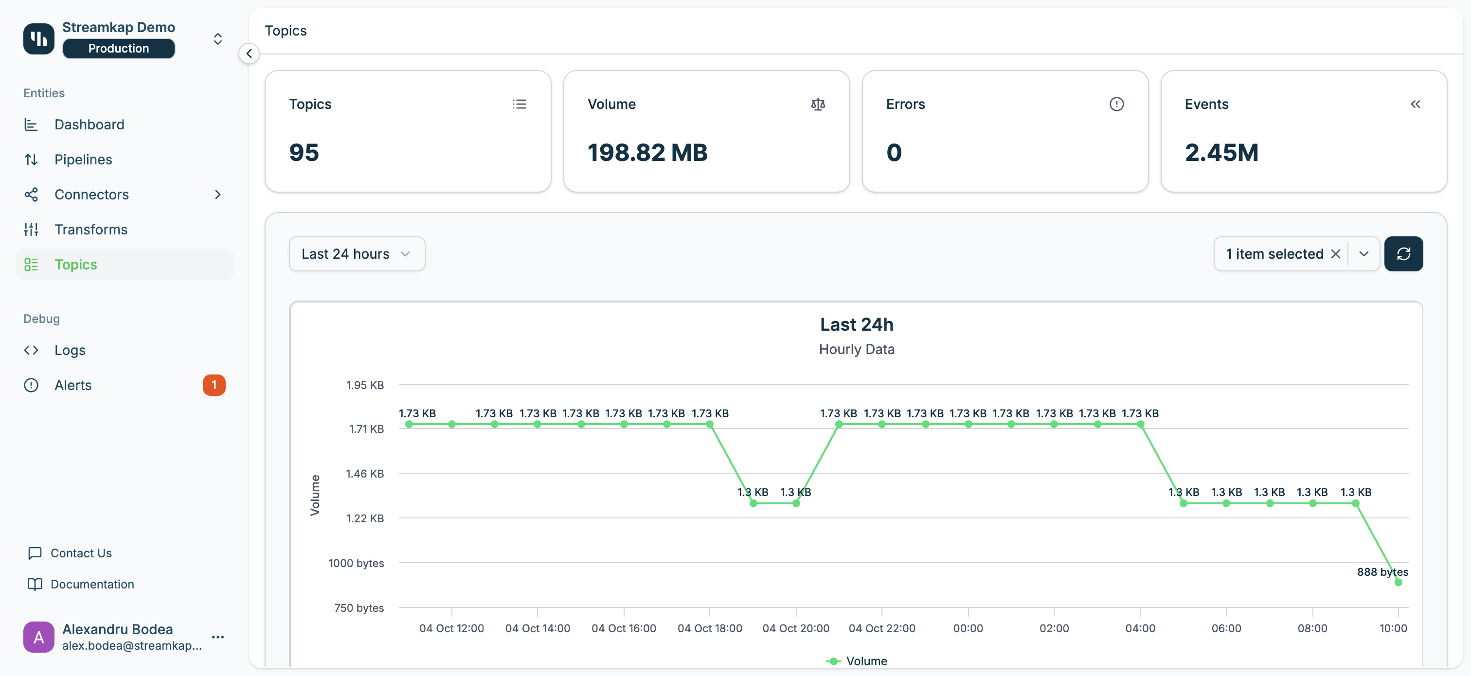 - Volume: Total data volume processed across all topics
