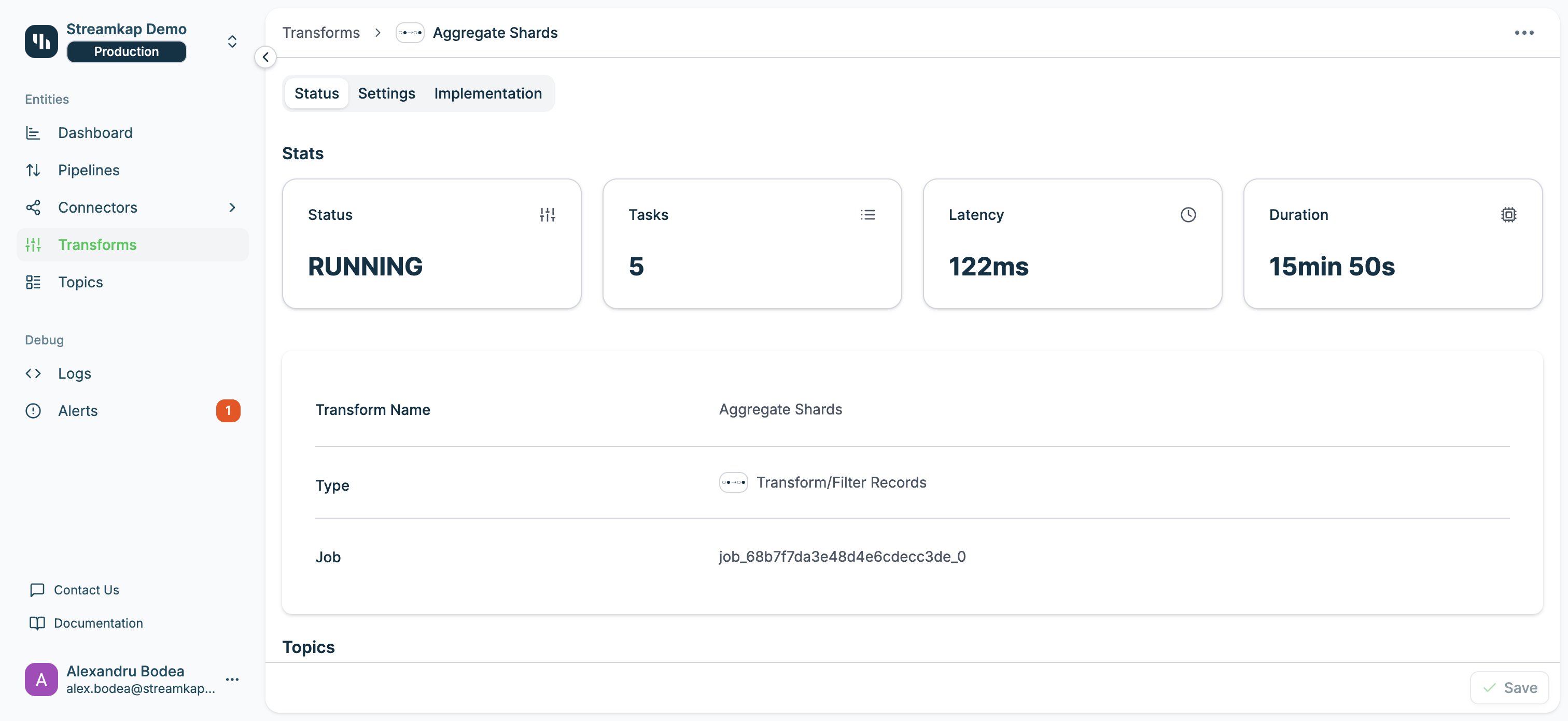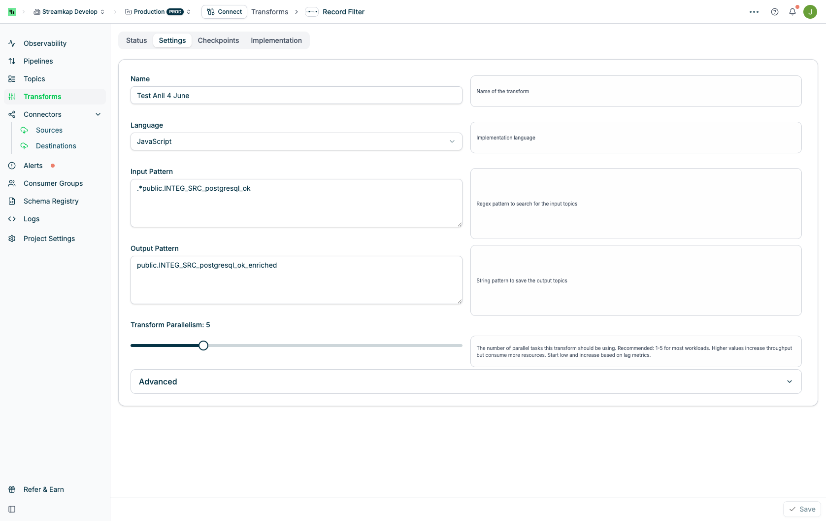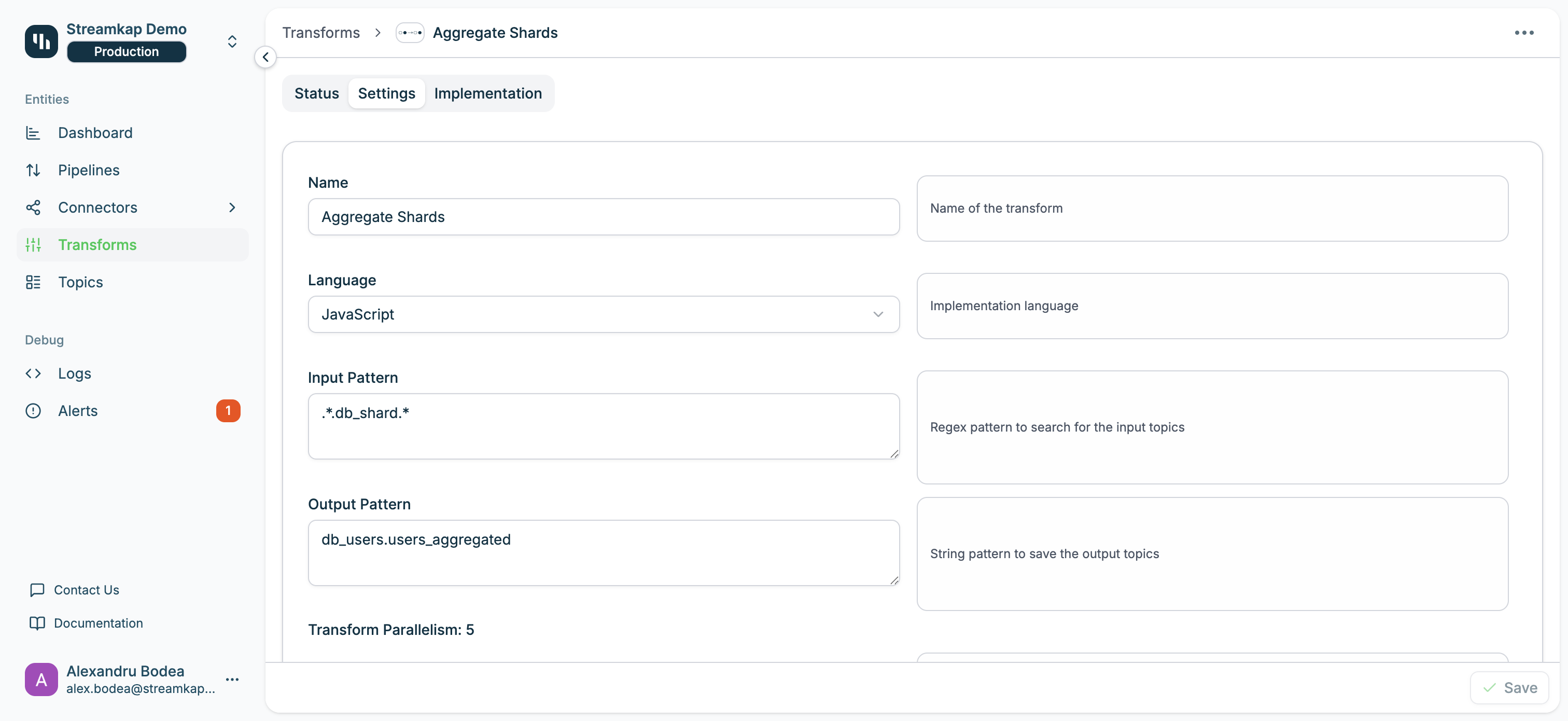 - Transform Types - Detailed guides for each transform type (Filter, Aggregate, Join, Enrich)